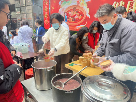 次日(1月26日腊八节当天),活动延续至瑞安市人民医院南门分院。作为该院区延续去年的腊八惠民传统,本次义诊更侧重于常见病诊疗、慢病管理及社区温情互动。医院门口开展温馨派粥,传递节日祝福;义诊区内,来自康复医院及南门分院的中医、妇科、皮肤科、全科等专家耐心接诊,提供健康咨询与免费检测。中医师现场开展“腊八话养生”微讲座,讲解节气养生知识,吸引居民驻足交流。活动延续了往年温情,进一步加深了医院与社区居民的情感联结。